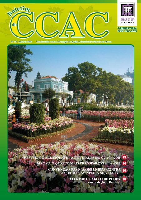O boletim pode ainda ser consultado na página electrónica do CCAC (www.ccac.org.mo).