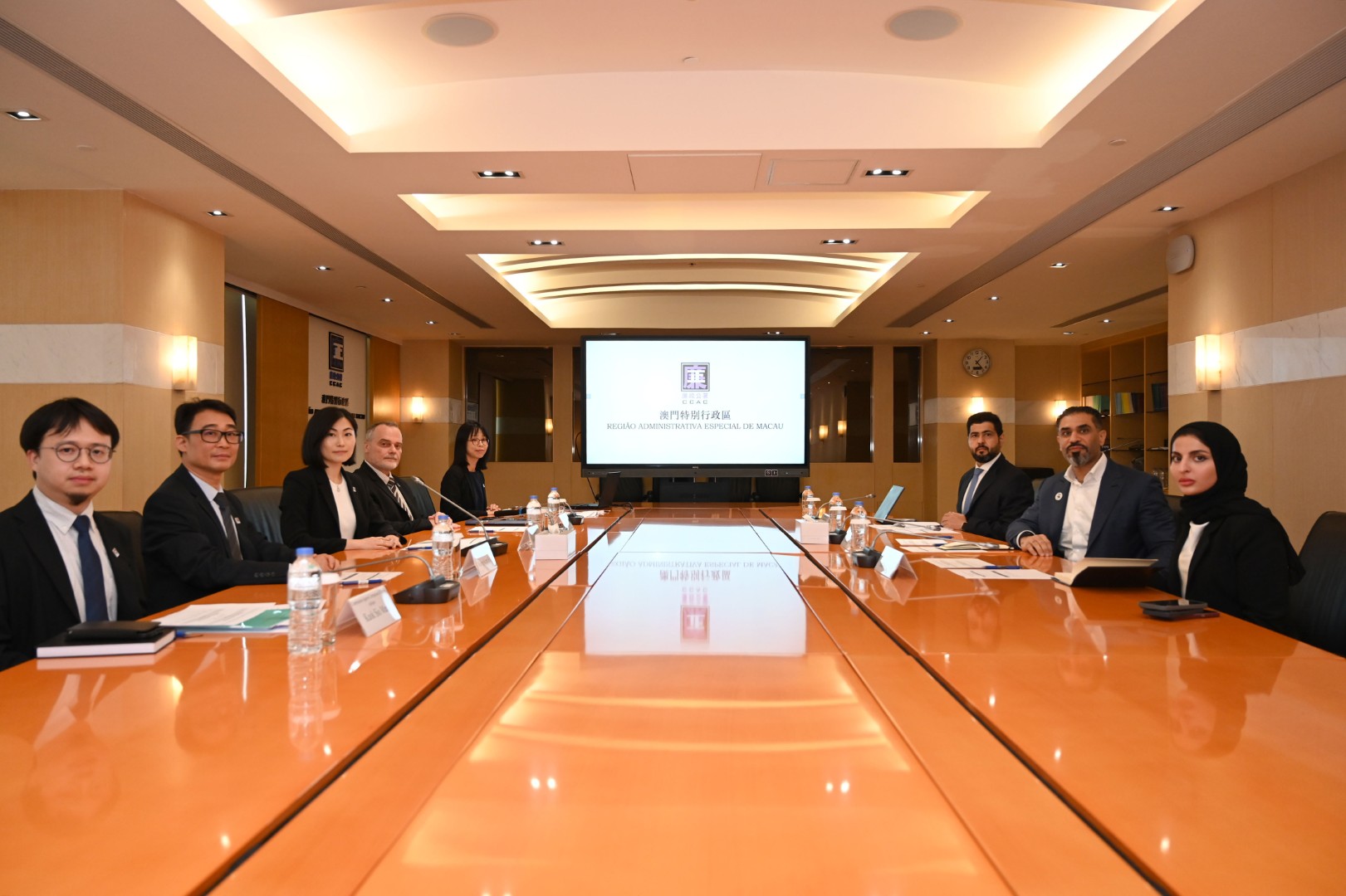 Durante o encontro, a equipa do CCAC fez uma apresentação sobre a história da sua evolução, as funções e a situação dos trabalhos das diversas subunidades orgânicas deste Comissariado. O encontro contou ainda com a presença do Adjunto da Comissária contra a Corrupção e Director dos Serviços contra a Corrupção, Wong Kim Fong, dos assessores do CCAC, Ivo Mineiro e Kuok Sio Man. Em representação da UAEAA, estiveram ainda presentes o Deputy Director of Department of Asia, Arab and GCC Relations, Amer Al Menhali, e a Chairman Secretary of Strategic Relations Affairs, Alia Al Shamsi.