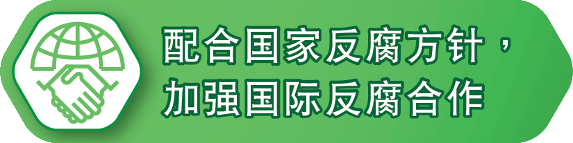 - 加强区域及国际合作,配合国际预防和打击贪腐的大方向