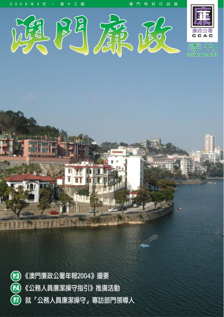 廉政公署出版的《澳门廉政》季刊,第十三期中、葡文版已经出版,市民可到本澳多个地点免费索阅,或透过廉政公署网页浏览,网址为www.ccac.org.mo。