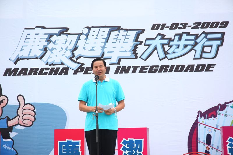 为凝聚澳门市民的力量,共同支持廉洁选举,由廉政公署联同本澳42个民间社团和学校合办之「廉洁选举大步行」今日早上在西湾湖广场举行,逾2000名市民围绕西湾湖步行一圈,身体力行,用行动宣示大众合力维护廉洁选举的决心。