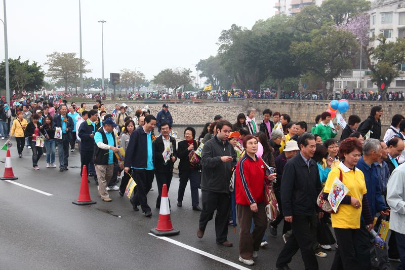 上午11时,在濠江步操旗乐队和劳校学生组成的彩旗队引领下,2000名嘉宾和市民不分职业、不分阶层、不分年龄,精神抖擞地为支持廉洁选举齐举步。步行队伍从西湾湖广场出发,途经何鸿燊博士大马路、西湾湖街、民国大马路及西湾湖景大马路,至终点站西湾湖畔水上活动中心广场,全程约2.5公里。