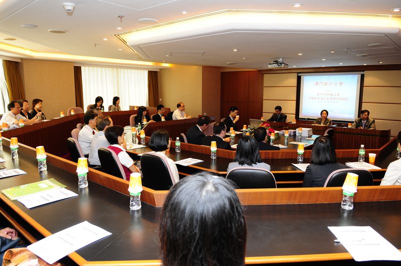 为配合《预防及遏止私营部门贿赂》法律的生效,廉政公署於10月23日与澳门银行公会合办座谈会,与会者为在各银行中从事合规部或分管领域的代表,合共40馀人。