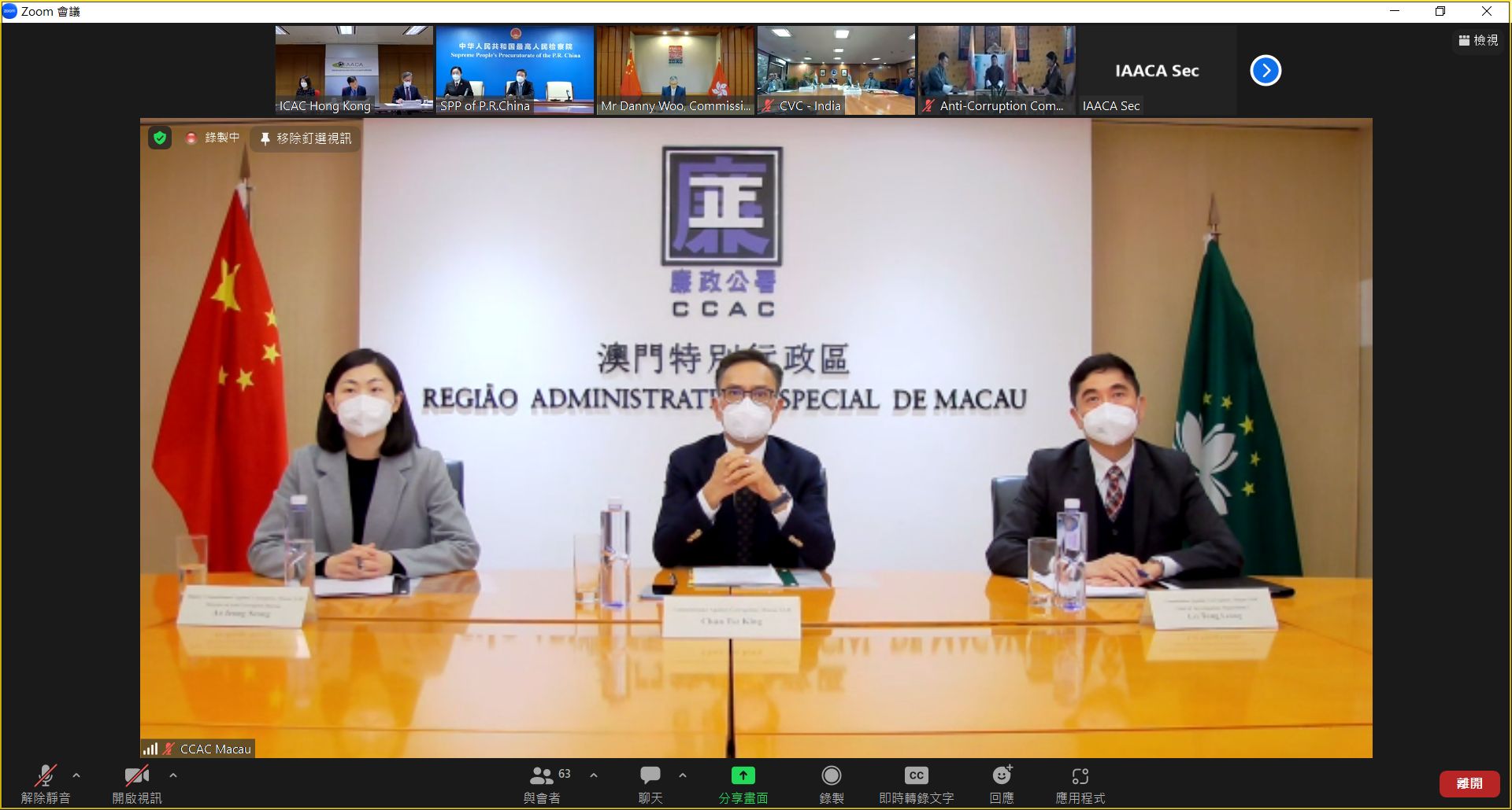 廉政专员线上参加国际反贪局联合会第12次会员代表大会