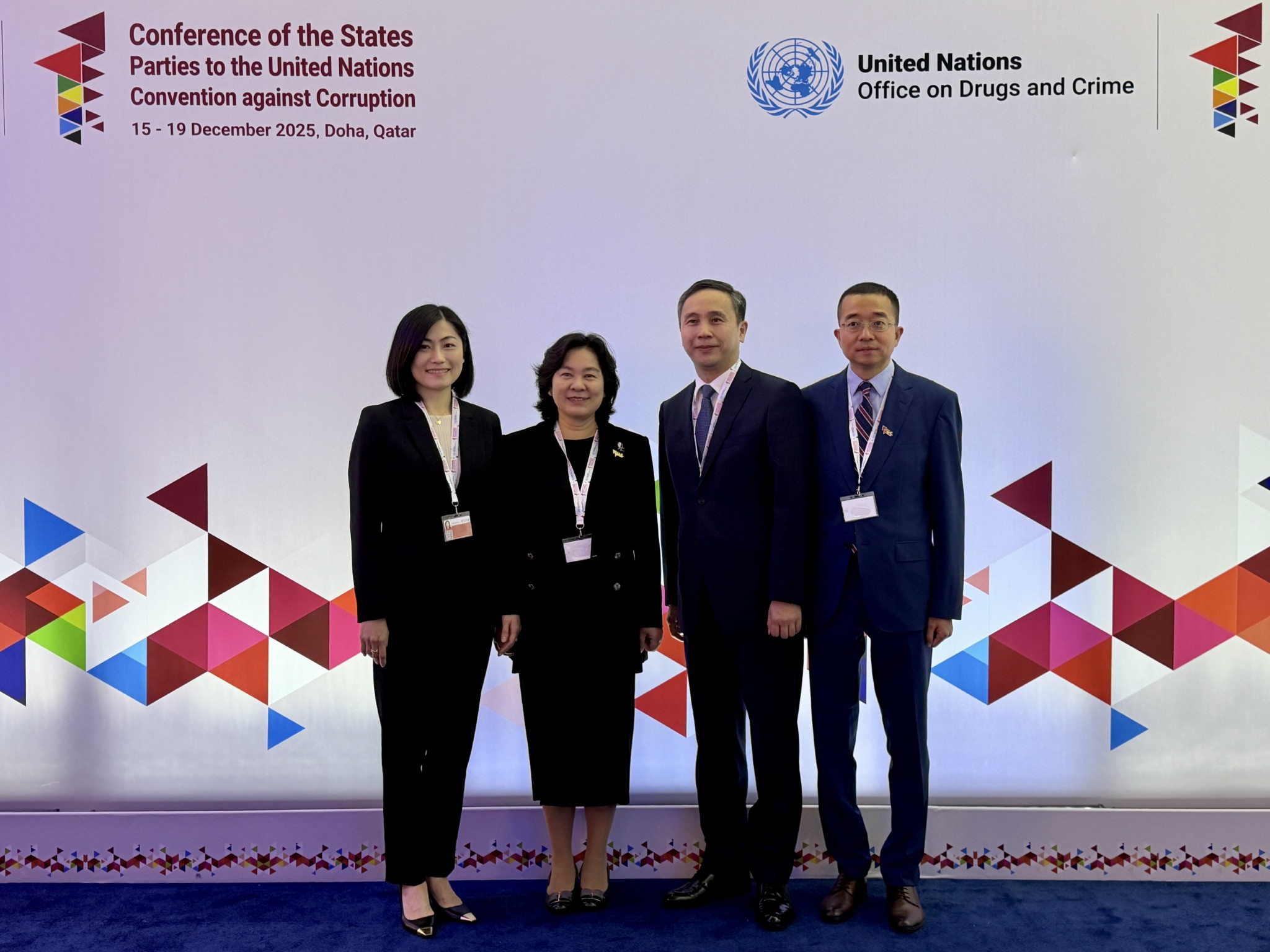 廉政专员欧阳湘一行以中国代表团成员身分,于本月15日出席在卡塔尔首都多哈举行的《联合国反腐败公约》第11届缔约国会议,中国代表团团长、外交部副部长华春莹出席开幕式并发言。