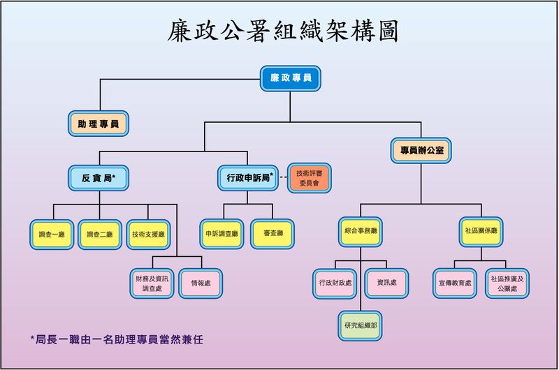 為加強對資訊及財務分析和情報工作的需要,反貪局增設「財政及資訊調查處」以及「情報處」。而行政申訴局轄下的「調查三廳」易名為「申訴調查廳」,並在其職務範圍內增加接受求助及諮詢的職能;行政申訴局同時增設「技術評審委員會」,該委員會純粹是操作性質,以保證該局技術質量,不會增加人員。