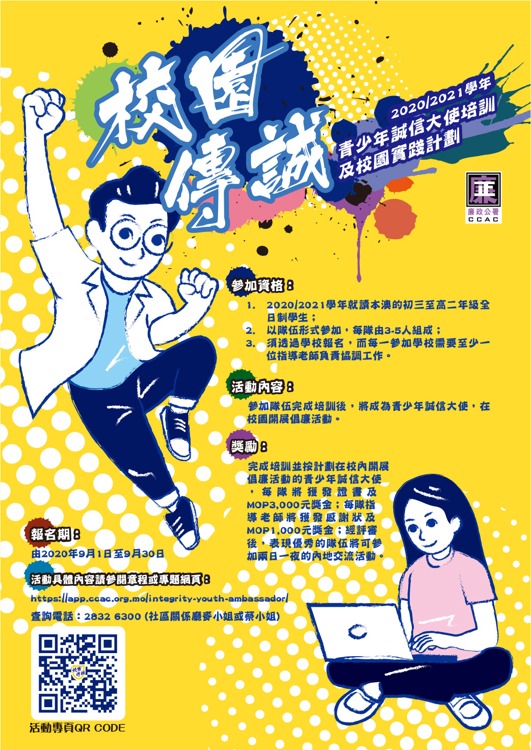 有關活動詳情,可掃描活動專頁二維碼或登入廉署網頁www.ccac.org.mo瀏覽。